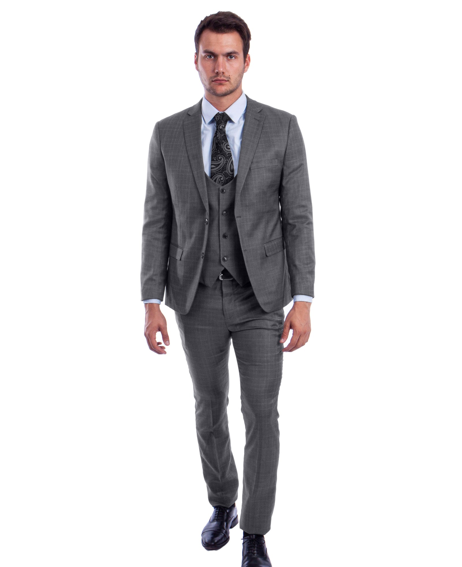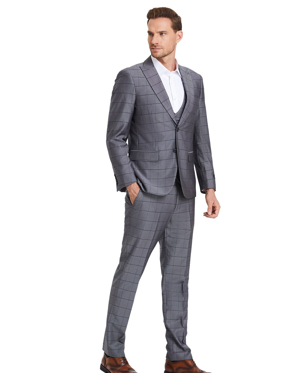 Men's Gunmetal Grey Window Plaid Double Breast Suit