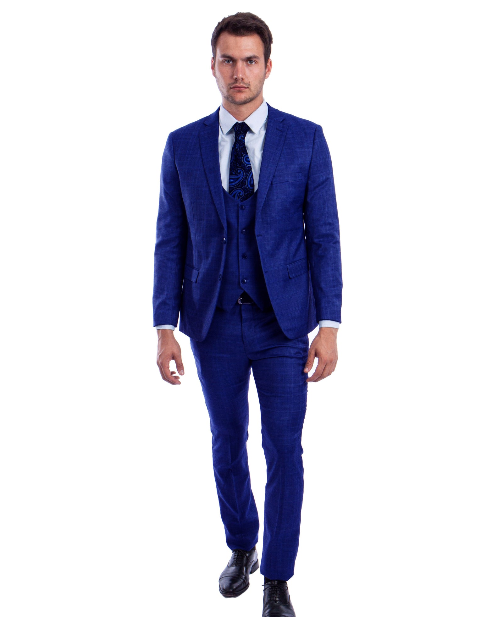 Mens Admiral Blue Double Breast U-Shape Vest Suit