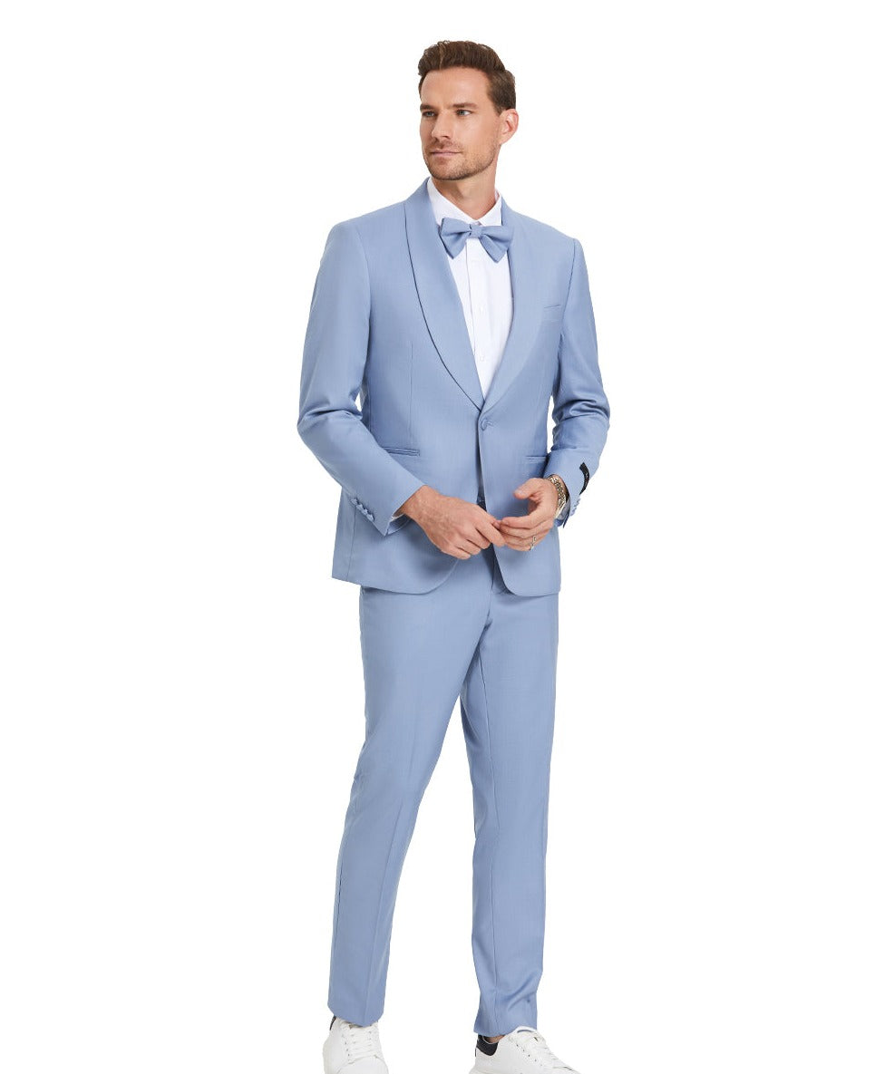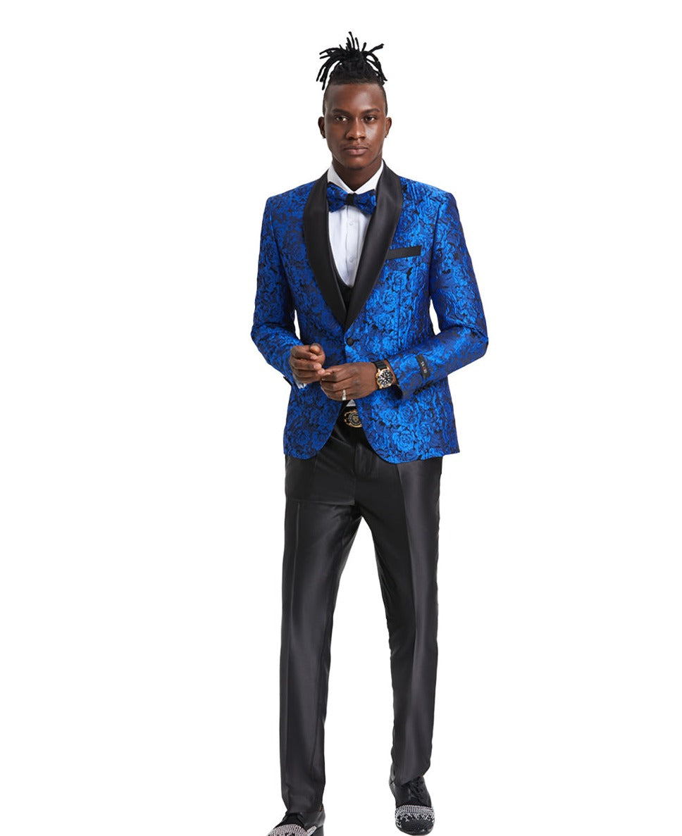 Men's Royal Blue/Black Shawl Collar Paisley Suit