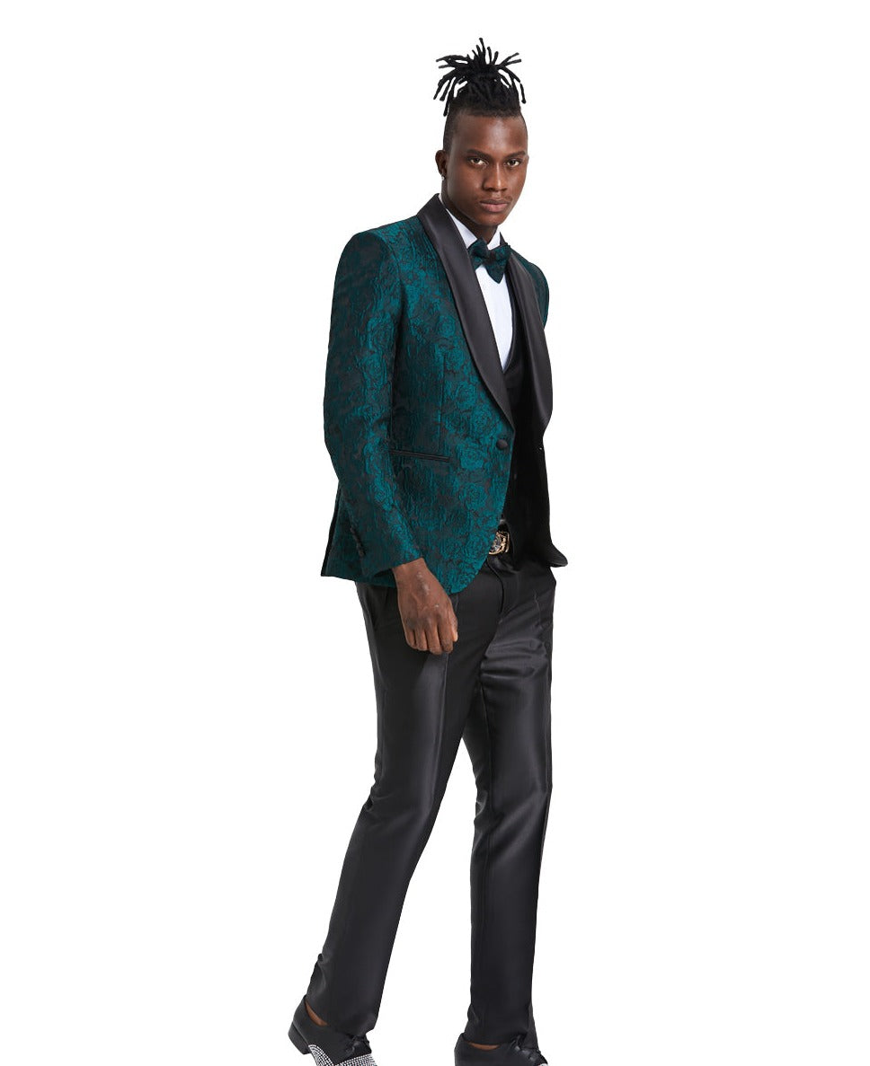 Men's Hunter/Black Shawl Collar Paisley Suit
