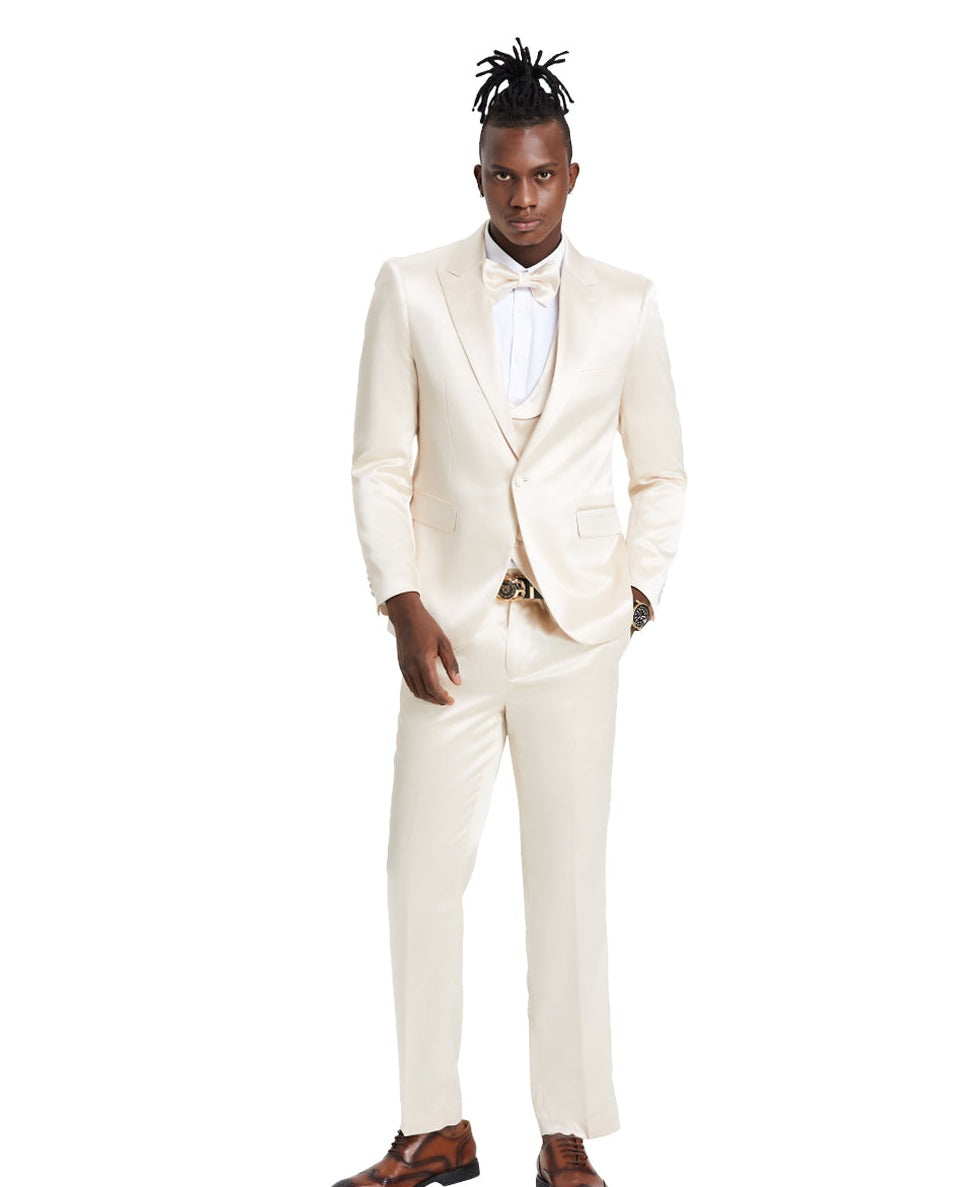 Men's Champagne Solid Shiny U-Shape Vest Suit
