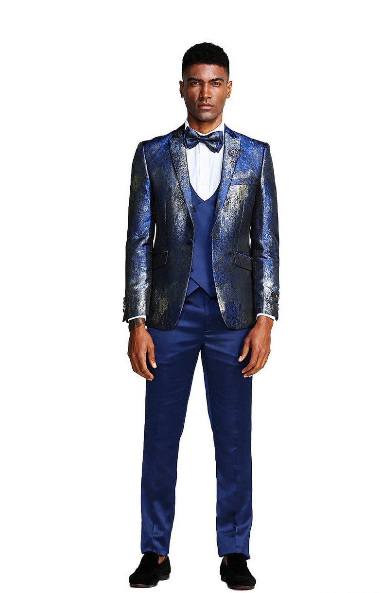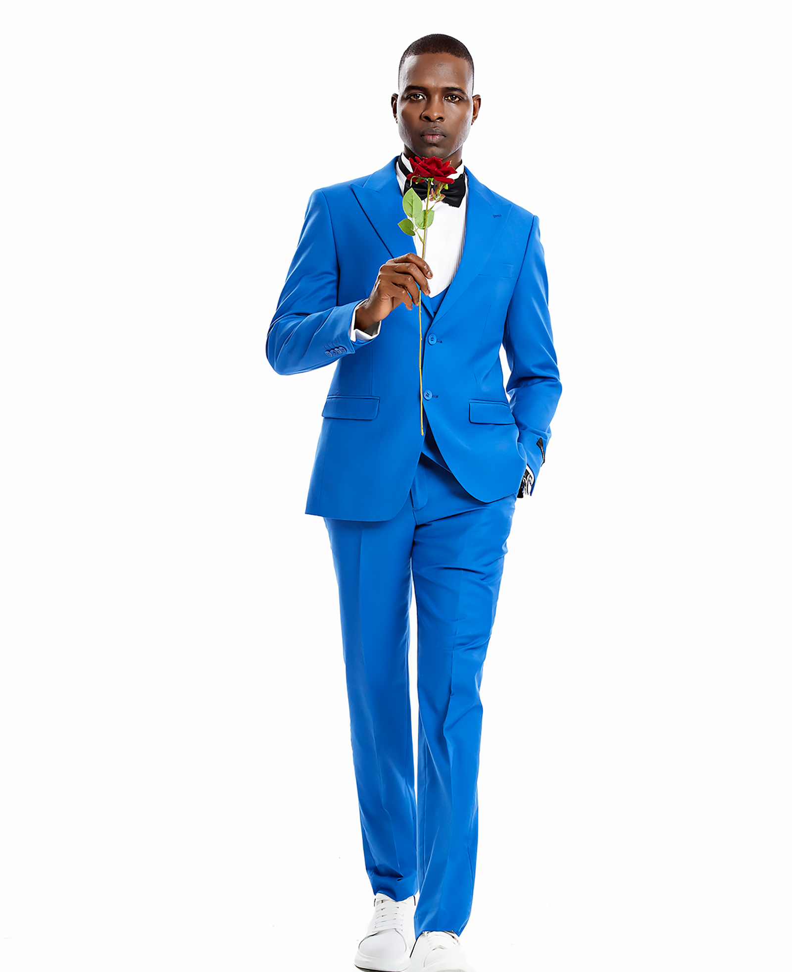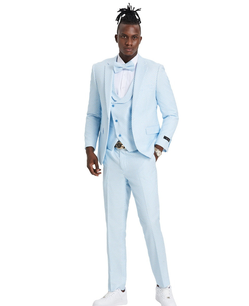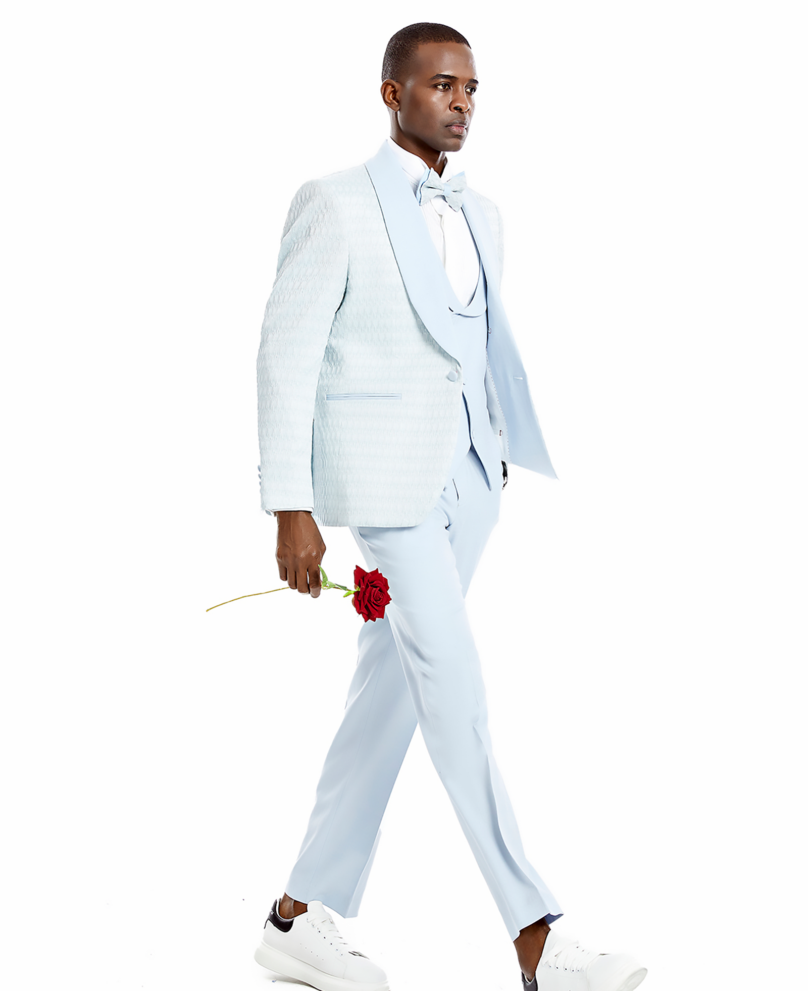 Men's Sky Blue 3 PC Suit with U-Shaped Shawl Collared Vest