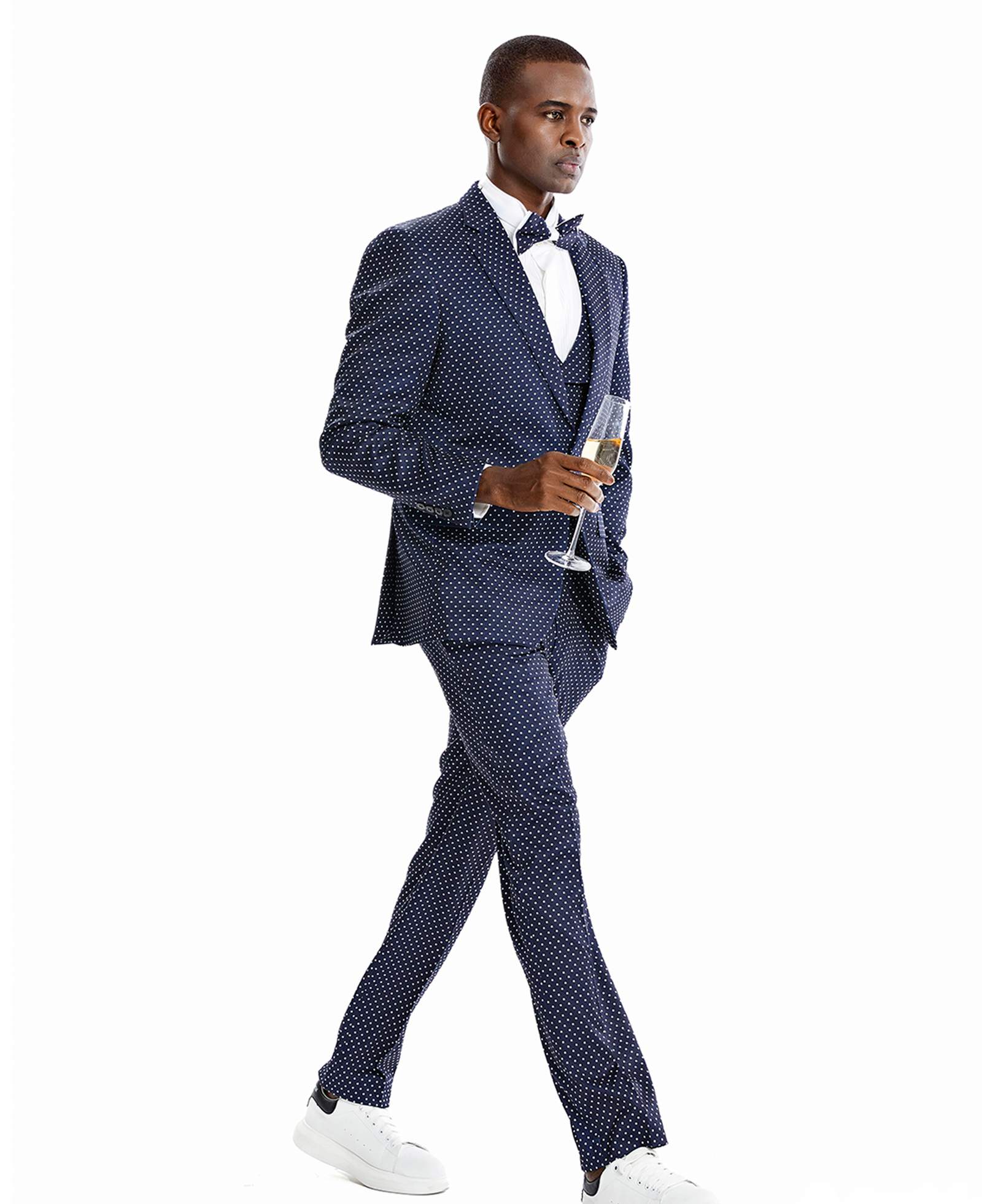 Men's Navy/White Notch Lapel Polka-Dot Suit