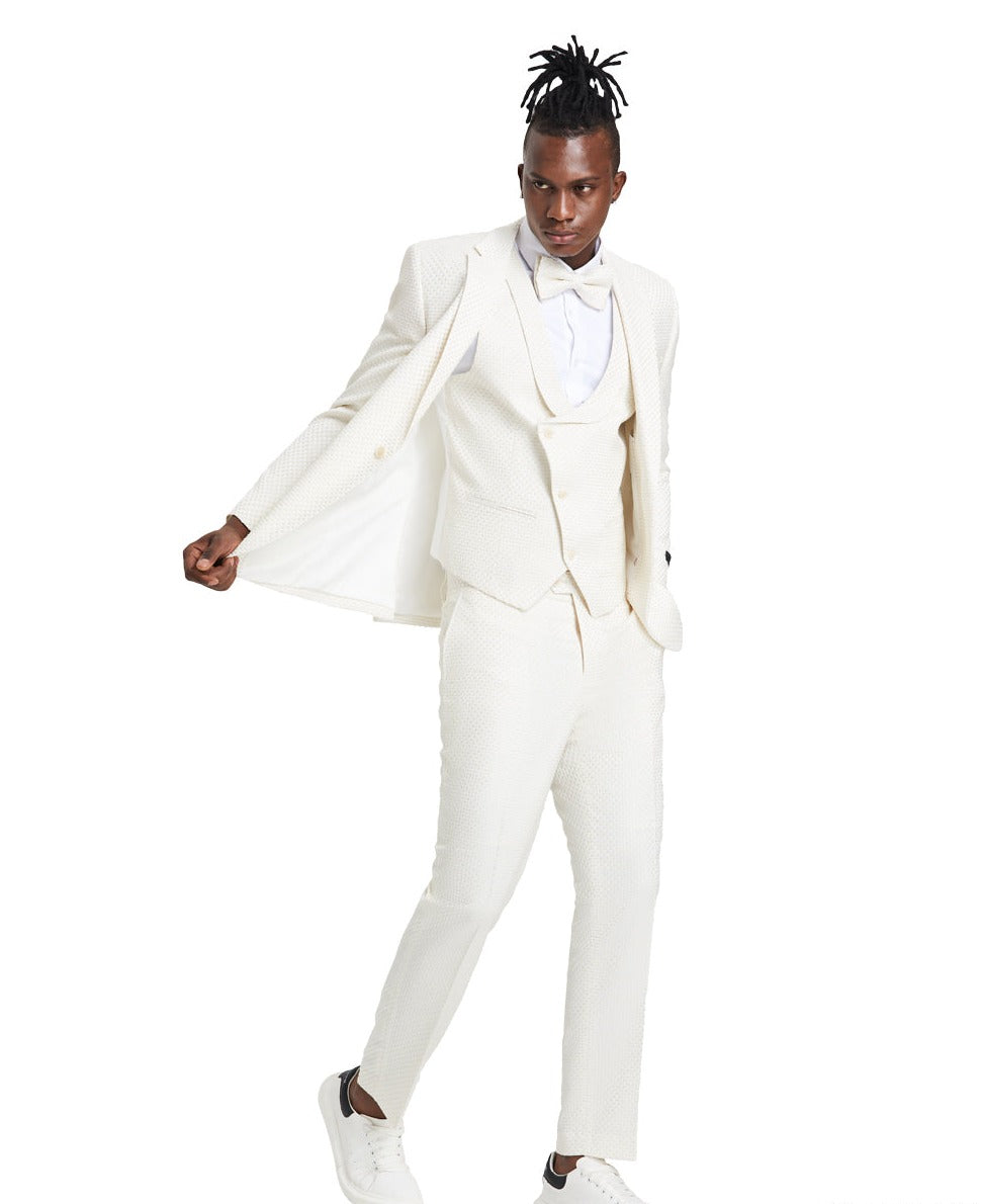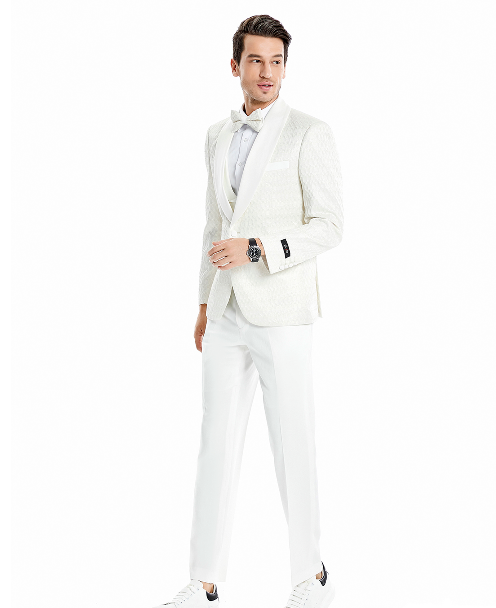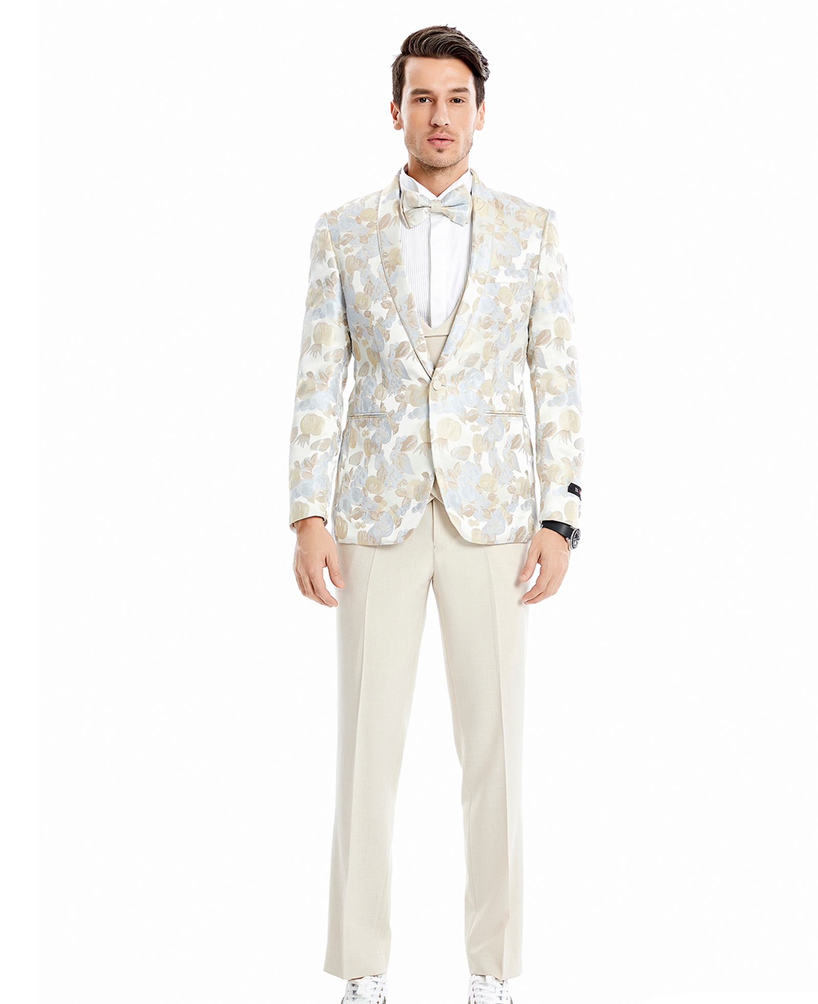 Men's Ivory Satin Shawl Collar Gold Paisley Suit