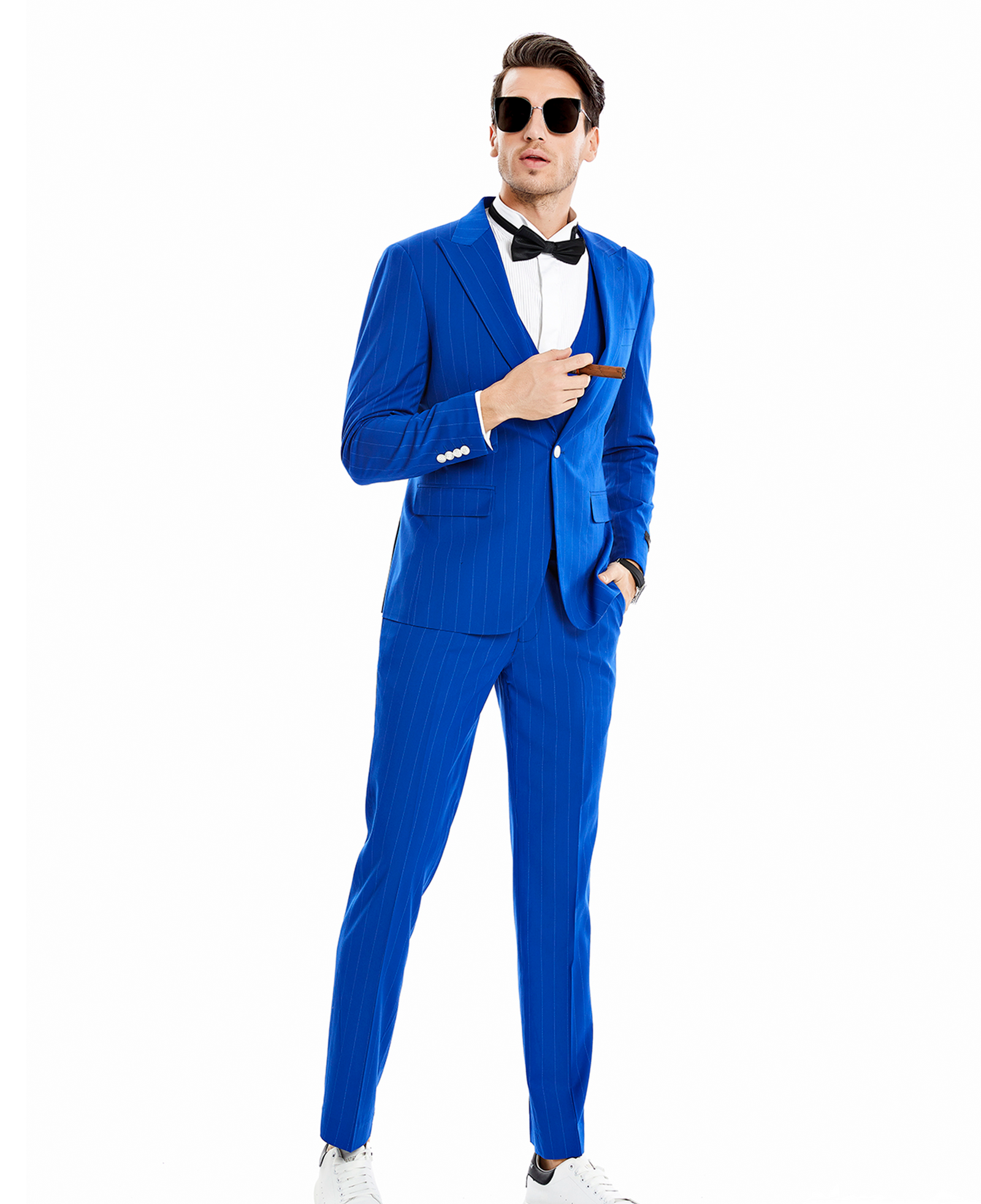 Men's Royal Blue Pinstripe Vest Double Breasted Suit