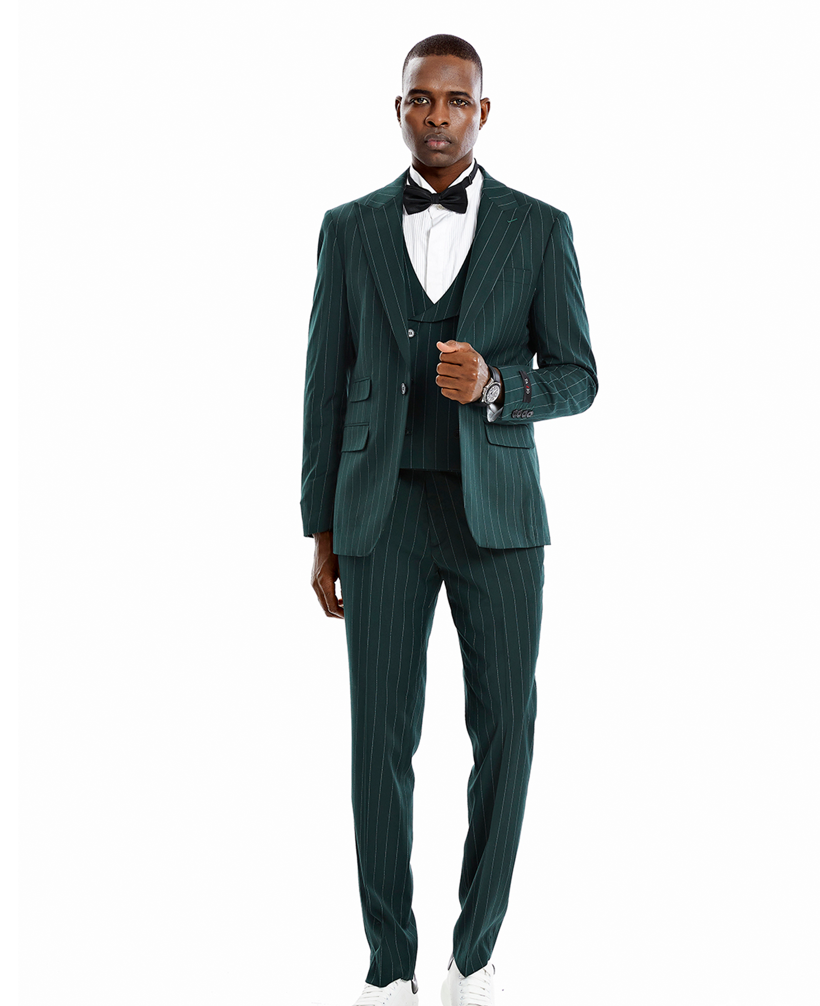 Men's Hunter Green Peak Lapel Pinstripe Suit