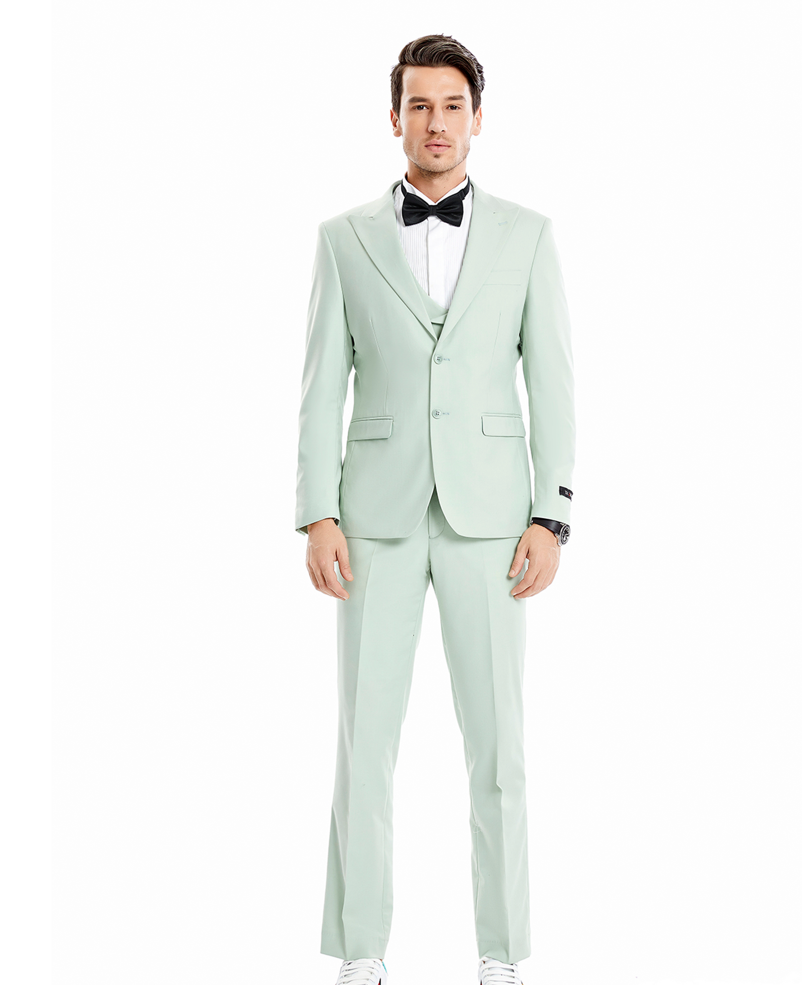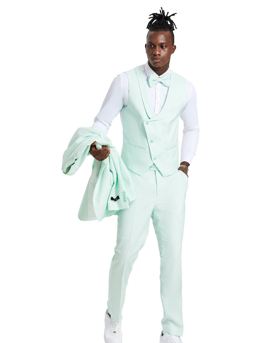 Men's Mint 3 PC Suit with U-Shaped Shawl Collared Vest