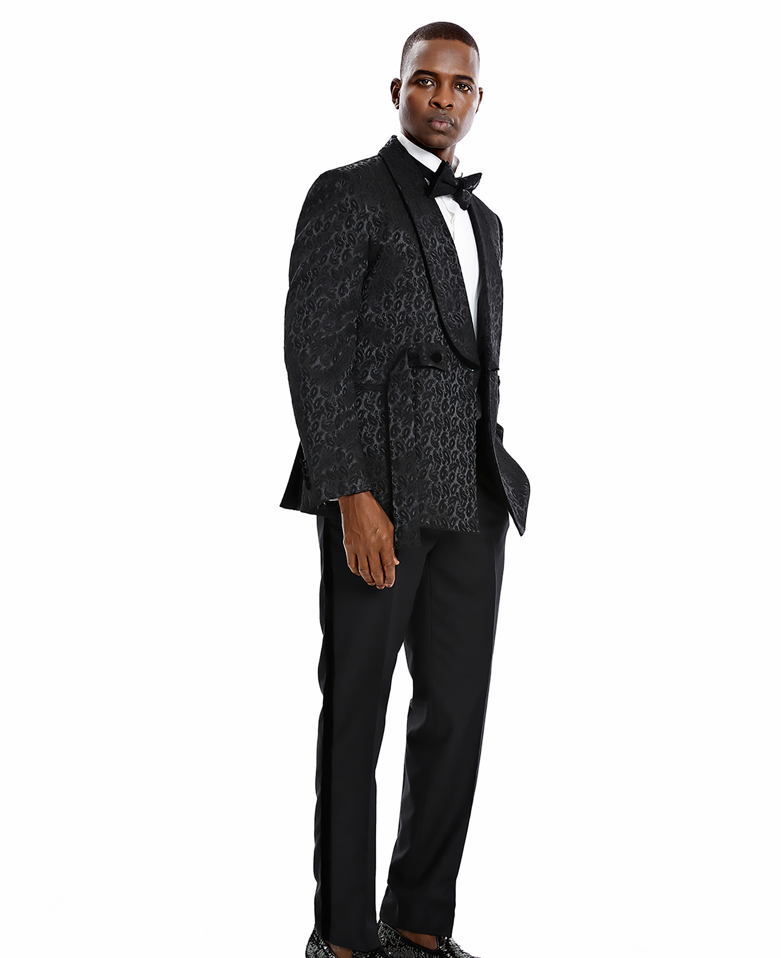 Men's Black/Black Solid Paisley Shawl Collar Suit