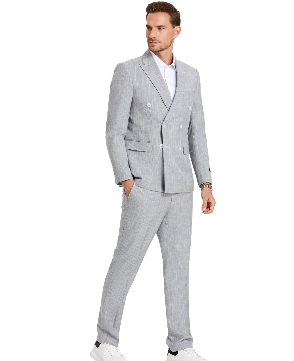 Men's Light Grey 2 PC Double Breasted Pin-Stripe Suit